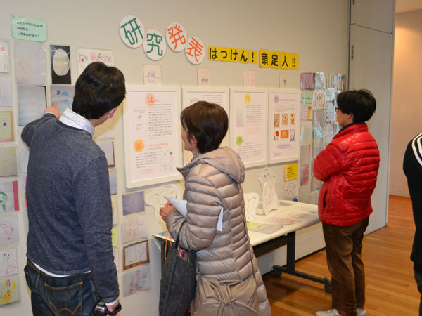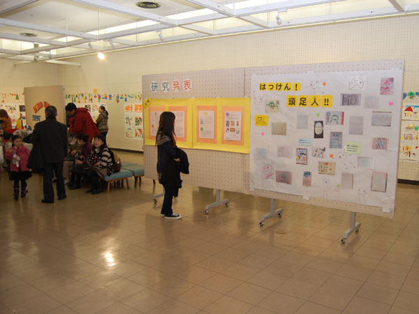 カリキュラム展示では「カリキュラム縁日」として見るだけでなく実際に触って遊べるコーナーになり、研究発表では「頭足人」をテーマに各教室の子どもたちやご兄弟の頭足人画像をいただきました。